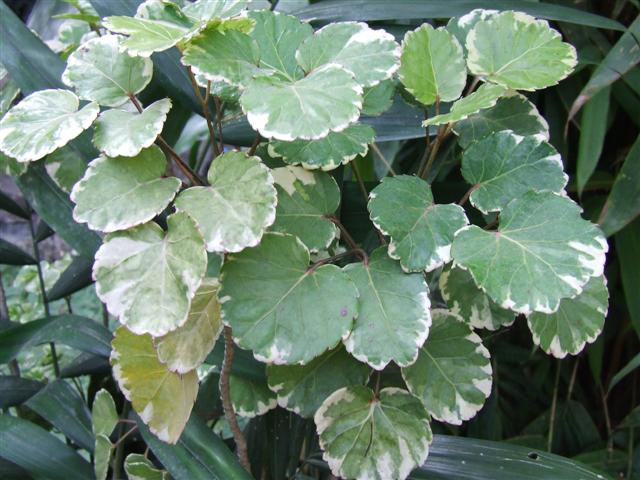 ใบยาวปลายแหลม แข็งเป็นมัน ใบมีสีเหลืองกลางใบสีเขียวอ่อน