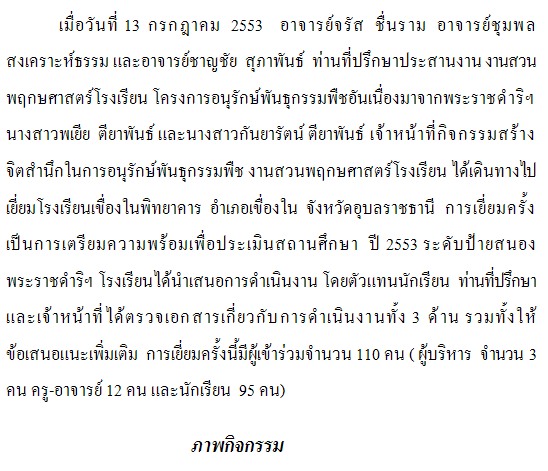 อพ.สธ.เยี่ยมติดตามการดำเนินงานสวนพฤกษศาสตร์โรงเรียน โรงเรียนเขื่องในพิทยาคาร อ.เขื่องใน จ.อุบลราชธานี
