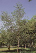 แก่นสีน้ำตาล และมีแถบสีดำแซม เรือนยอดเป็นพุ่มโปร่ง ใบ เป็นใบประกอบ