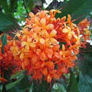 เป็นช่อพุ่มคล้ายดอกเข็ม ขนาดกว้าง 5-15 ซม.