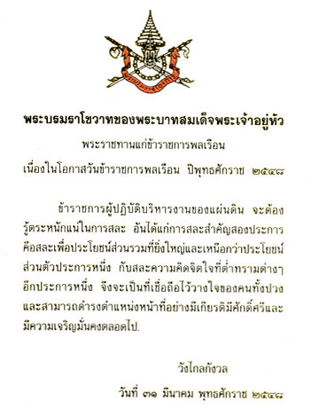 พระบรมราโชวาทของพระบาทสมเด็จพระเจ้าอยู่หัว พระราชทานแก่ข้าราชการพลเรือน เนื่องในโอกาสวันข้าราชการพลเรือน ปีพุทธศักราช ๒๕๔๘